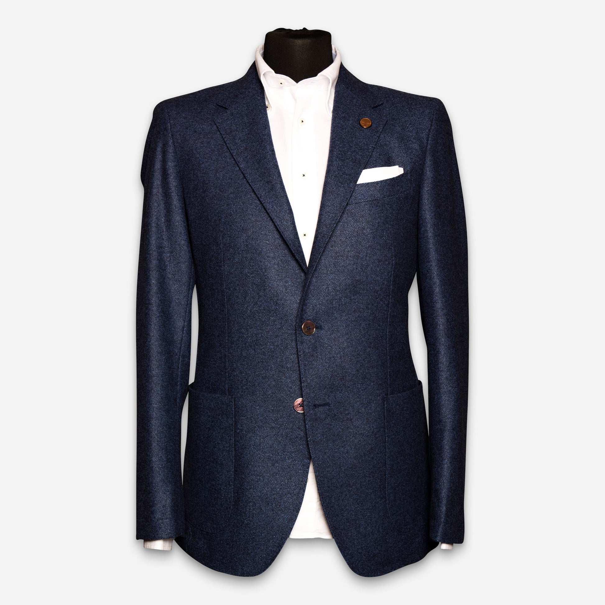 Dieses Sakko aus reiner edelster Wolle besticht durch seine interessante Strukturoptik in eleganten Blaunuancen. Hochglanzknöpfe runden den edlen Look ab! Besonders passend zu unserer Chino Eagle für ein sichtbar hochwertiges Outfit im angesagten Casual Chic.