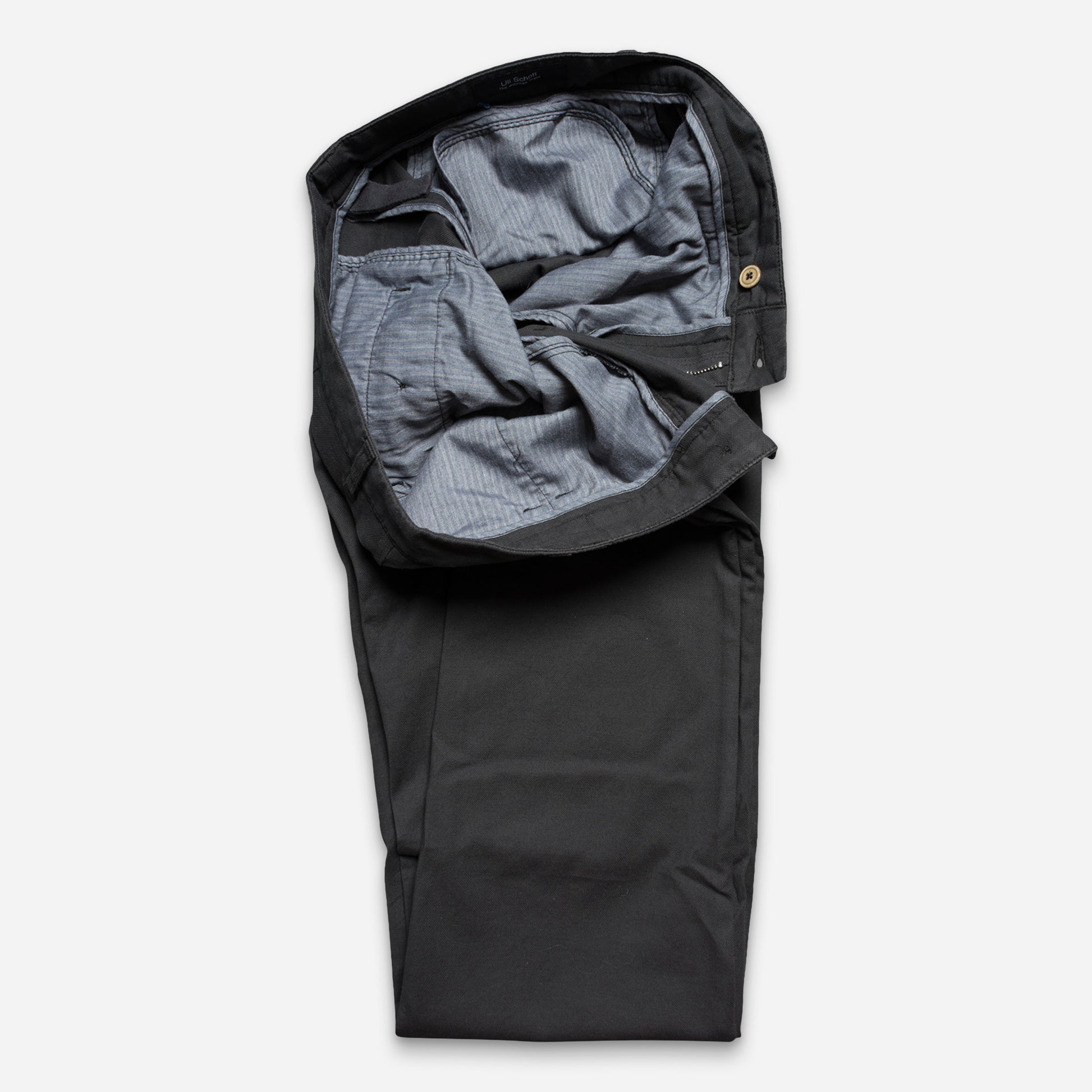 - Hochwertige Verarbeitung: Knöpfe über Kreuz fixiert, AMF-Kante am Hosentascheneingriff, Halbmondverriegelung an den Taschen, italienische Bund-Verarbeitung dreimal geknöpft, geteilter Hosenbund, Kleingeld-Tasche am Hosenbund